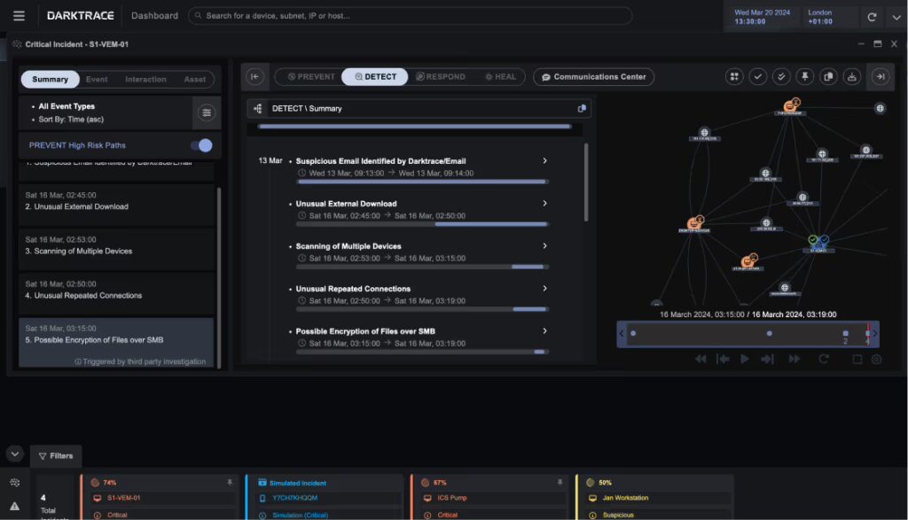 Rather than teaching an AI system what an ‘attack’ looks like, training it on large data lakes of thousands of organizations’ data, Darktrace AI learns from your unique business data to understand what is normal to identify high risk, anomalous activity for each asset across domains. This enables it to detect subtle deviations that signal a threat, including novel and AI-driven cyber-attacks.